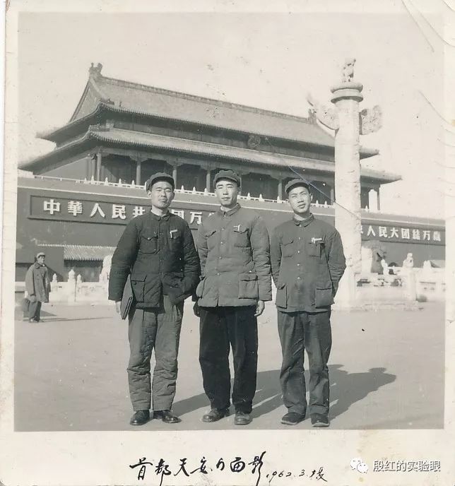 1962年3月,王恩荣(右)与时任副校长胡传兴(中)、肖尚德(左)老师在北京学习时合影。照片由王恩荣提供。