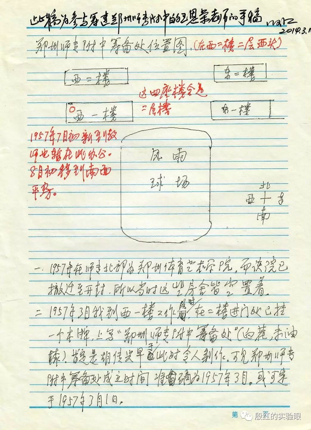 2014年,王恩荣老师手绘的当年附中筹备处位置示意图。照片由殷红于2019年11月5日拍摄。