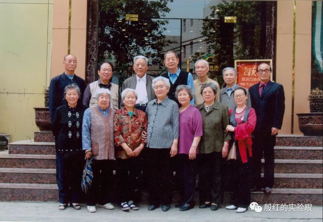 2005年,部分建校初期的老同志合影。前排左起:陈其萍、刘凤娇、王素贞、贾幼琴、鲁莲芝、黄秀玲、李彬。后排左起:牛文田、肖尚德、李质若、侯志杨、王振亚、王华轩、郭成立。